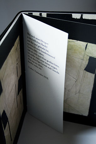 Handsatz, gefaltet 15 x 20, aufgefaltet 60 x 40, hier aufgeblättert 30 x 20